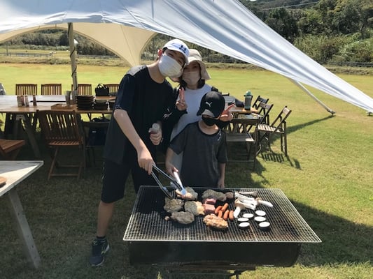 9月25日(日)西日本新聞民生事業団の招待で小学生から高校生まで9組20人が唐泊ヴィレッジでさわやかな一日を過ごしました。姪浜駅に集合、貸し切りバスで唐泊漁港駐車場に到着後、トゥクトゥクに乗ってキャンプ場へゴー!