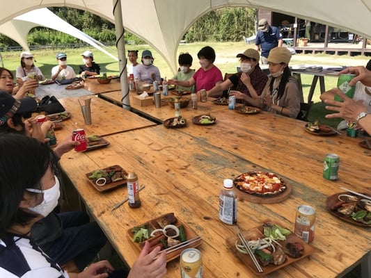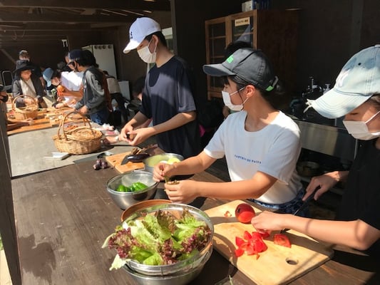 2021年7月25日(日)能古島にある(株)ピエトロの農園へ小学生のいるひとり親9組20人が招待されました。船の旅にみんなわくわくして能古島へ、コロナ対策をばっちりして、農園へ。お姉さんから説明を受けた後、キュウリや、ナス、トマトなどの夏野菜を収穫し、とれたての野菜料理や氷で冷たく冷やしたトマトを丸かじり。 バーベキューやおにぎりをいただき、ピザも自分たちでトッピングしておいしく焼いていただきました。食事のあとは、かき氷を作ったり、農園内に作られた、ツリーハウスやブランコに乗ったり、森の中で虫取りなどをして遊びました。とても楽しい思い出ができました。