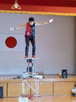 KAJIさんの大道芸は、さすがに世界ギネスに載っただけあって、ハラハラドキドキ。技がきまると大歓声が響き渡りました。