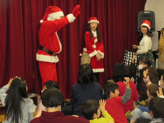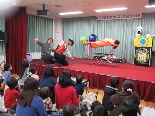 2018年 12/23親子で楽しむクリスマス会。テバッタさんのマジックショーやサンタさんの登場に大喜び
