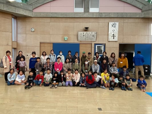12月17日(日)雪が舞い散る冬一番の寒い日.赤坂小学校の講堂に27組の親子、70名の参加がありました。